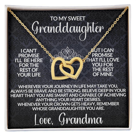 TO MY GRANDDAUGHTER/ PROMISE TO LOVE YOU/ LOVE GRANDMA/ INTERLOCKING HEARTS NECKLACE
