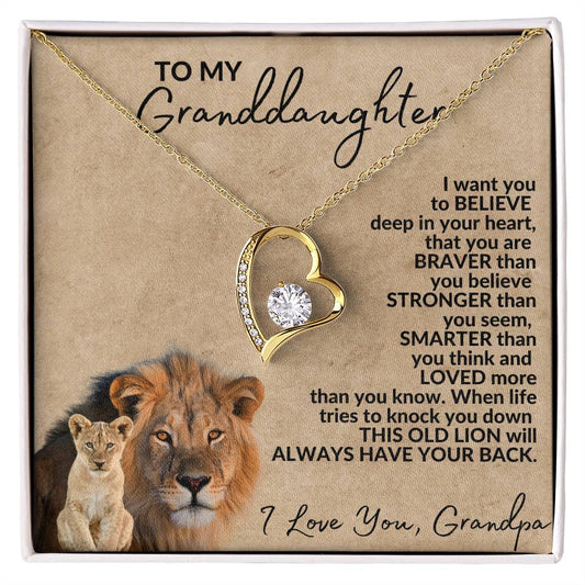 To My Granddaughter, You Are Braver Than You Believe, Love Grandpa/ Heart Necklace with CZ's