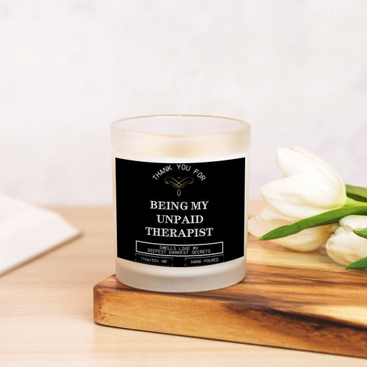 Best Friend Funny Gift, Thank You For Being My Unpaid Therapist, Hand Poured Scented or Unscented Soy Wax Candle 11 oz)