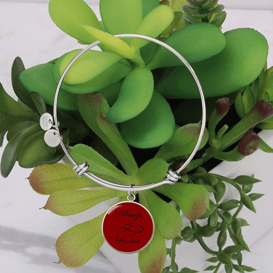 ALWAYS & FOREVER/ ON SCARLET RED/ ENGRAVED BANGLE BRACELET