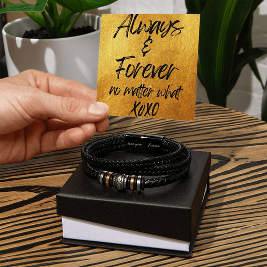 ALWAYS & FOREVER NO MATTER WHAT/ MENS VEGAN LEATHER BRACELET W/MAGNETIC CLASP