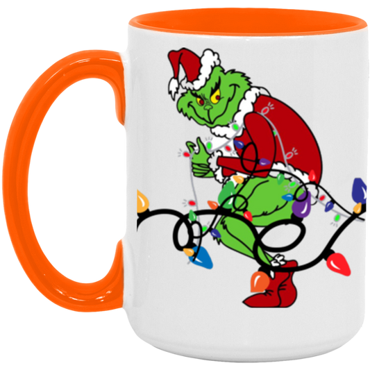 Cute Santa Grinch Tangle in Christmas Lights/ 15oz Ceramic Coffee Cup