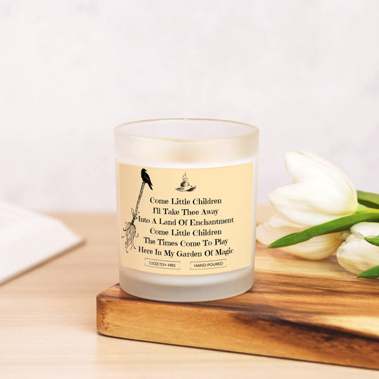 Hocus Pocus Quote Fun Fall/Halloween Frosted Glass Candle/Wood Wick/Bamboo Lid (Hand Poured 11 oz)