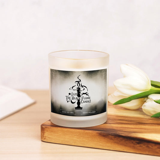 I lit the Black Flame Candle Hocus Pocus Funny Fall/Halloween/ Hand Poured, Frosted Glass/Bamboo Lid, Wood Wick Candle (11 oz)