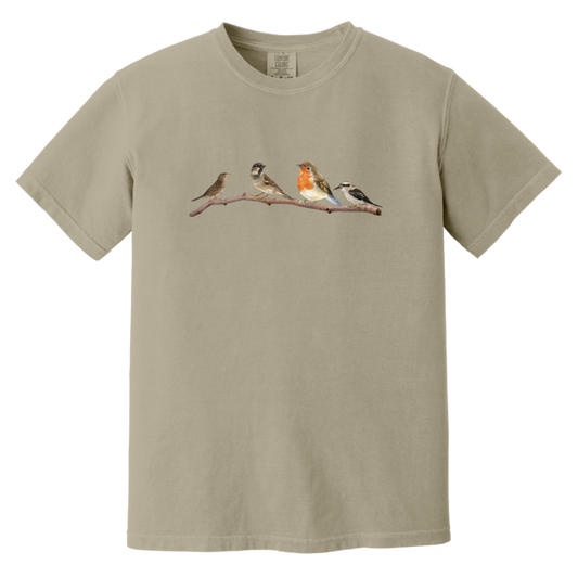 Cute Neutral Birds on Branch Fall Heavyweight Garment-Dyed Comfort Colors T-Shirt