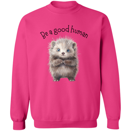 Be A Good Human, Cute Porcupine Cozy Pullover Sweatshirt, Inspirational Spread the Love Shirts, Choose your Color