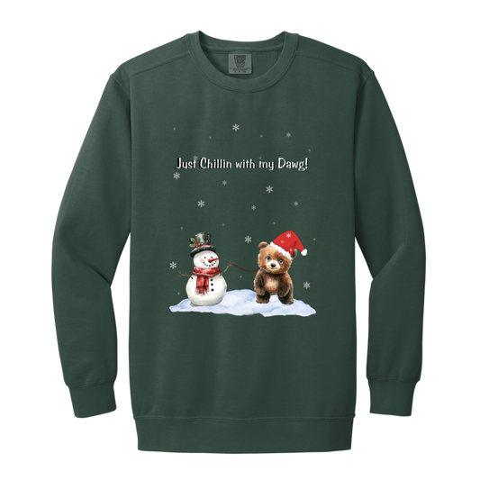 Just Chillin Cute Snowman walking Bear Cub ,Dyed Faded Ladies Crewneck Sweatshirt
