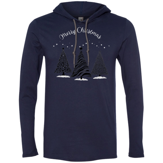 Merry Christmas Animal Print Trees With Snow Ladies Soft Long Sleeve T-Shirt Hoodie