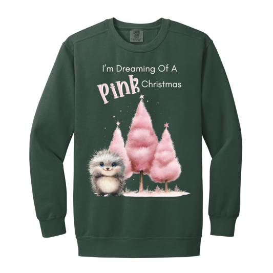 Dreaming Of A Pink Christmas, Cute Porcupine, Ladies Soft Faded Garment-Dyed Crewneck Sweatshirt