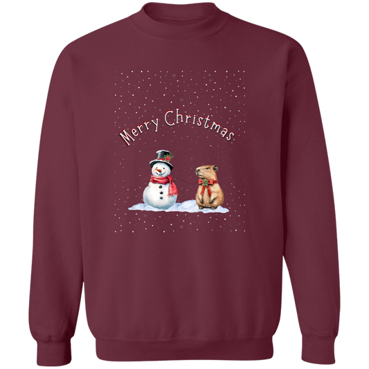 Merry Christmas Jolly Snowman walking a Capybara Ladies Cozy Sweatshirt
