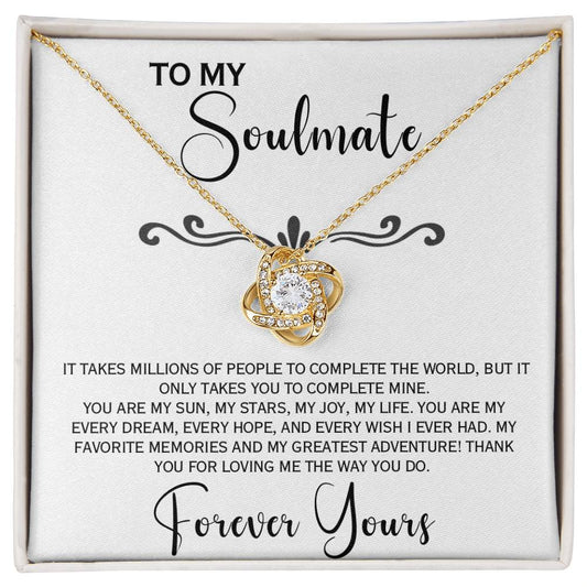 TO MY SOULMATE/ MY SUN MY STARS MY JOY/ LOVE KNOT NECKLACE